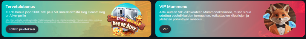 Edut eivät suinkaan lopu pelkkään ensitalletusbonukseen. Luvassa on nimittäin myös muita säännöllisiä bonuksia, jotka voivat sisältää esimerkiksi ilmaiskierroksia tai talletusbonuksia. Mammonalta löytyy myös oma nelitasoinen VIP-ohjelma, jonka jäsenenä pääsee nauttimaan mm. räätälöidyistä tarjouksista, yksityistilaisuuksista sekä personoiduista lahjoista. Edut paranevat sitä mukaa, kun etenee tasolta toiselle, mikä tekee pitkäaikaisesta asiakkuudesta entistäkin houkuttelevampaa.🦊⭐️
