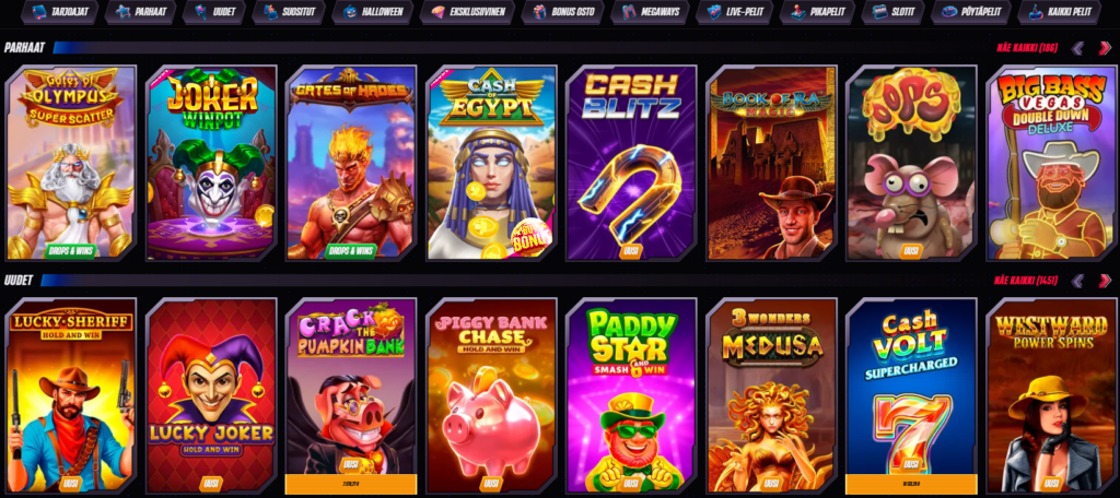 Kasinon pelivalikoima Winrollalla on erittäin kattava, kun tarjolla on arviolta jopa 20 000 peliä, yli 100 eri pelinkehittäjältä. Listoilta löytyy oikeastaan kaikki suomalaistenkin suosikit, kuten Pragmatic Play, Play`n GO, Evolution Gaming sekä Nolimit City luomuksineen. Tarjolla on mm. kolikkopelejä, pikapelejä, jackpotteja, nettiarpoja sekä pöytäpelejä. Autenttisuutta pelikokemukseen tuo live-kasino, jossa ammattitaitoiset jakajat hostaavat esimerkiksi blackjack-, ruletti- sekä baccarat-pöytiä, unohtamatta tietenkään Crazy Timen kaltaisia Game Show -pelejä! Parhaat pelinvalmistajat, laadukkaat suoratoistot sekä laajat panosrajat takaavat ainutlaatuisen pelikokemuksen.🎰