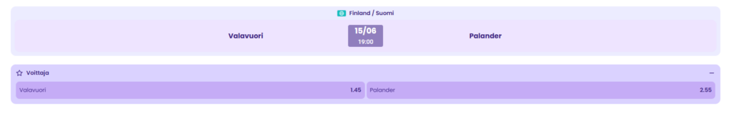 📊 Valavuori vs Palander vedonlyönti ja kertoimet