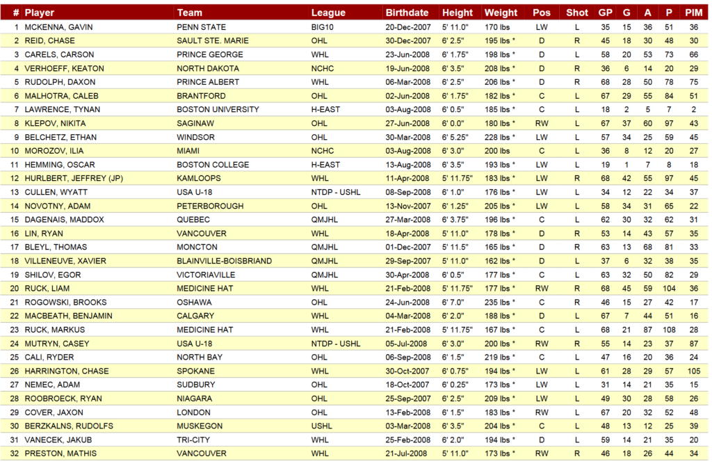 - Gavin McKenna, LW (Penn State, NCAA)