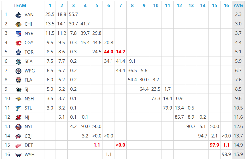 | 1. | Vancouver Canucks | 25,5 % |